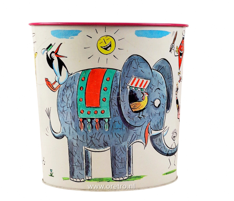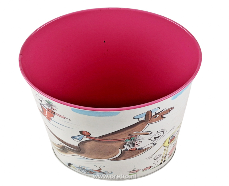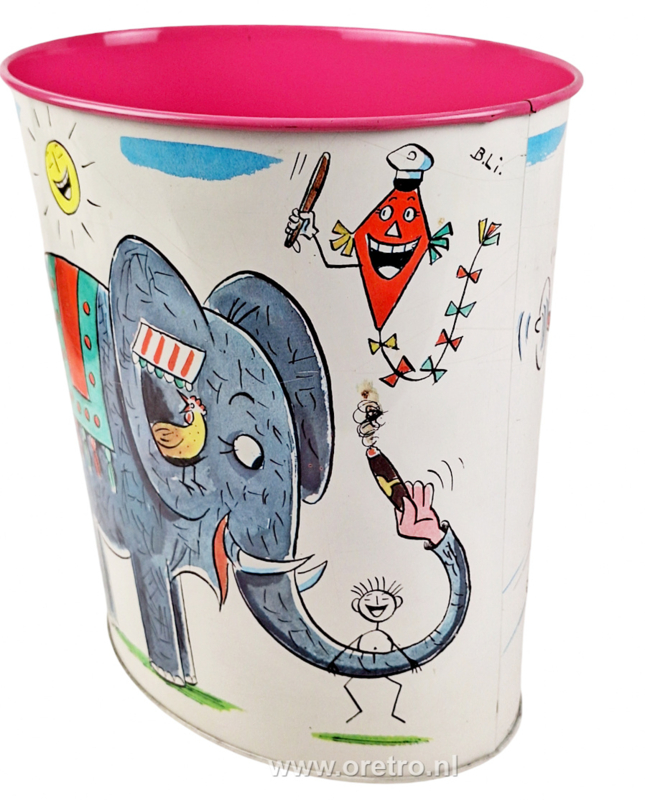 Vintage prullenbak van Tomado met de afbeeldingen van Pip & Zip. 1971.